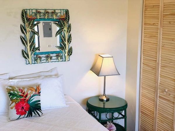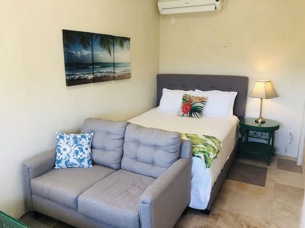 Our cute spacious studio is situated minutes outside of Cruz Bay in a quiet safe residential community. Clean and bright with a small kitchen and private bathroom, it is the perfect springboard for your exploration of our beautiful island. Ocean view and sometimes St Croix views on a clear day from deck and outside patio for morning coffee. Onsite parking as well as onsite assistance from property manager.