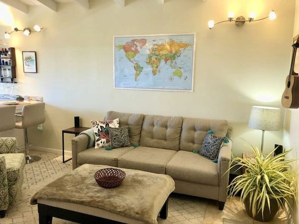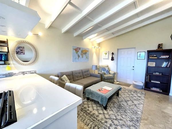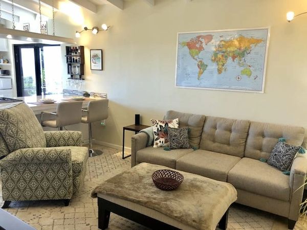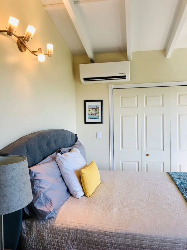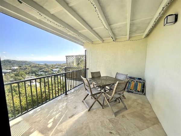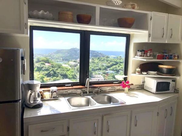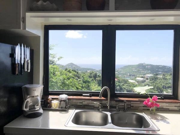 Small deck, views to St. Croix. Parking in front, no steep hills or 4WD required. Full AC, Internet, 55" TV in living room and bedroom, both with Amazon Firestick. Quick 5 minute drive to Cruz Bay, 2 minutes to grocery store and gas.